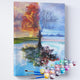 As telas já vêm acompanhadas das tintas(acrílicas) numeradas + 3 pincéis!